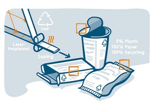 Bei der Substitution von kunstoffbasierten Packstoffen durch kreislauffähige, naturfaserbasierte Materialien stellen die abweichenden Verarbeitungs- und Qualitätseigenschaften der alternativen Stoffe eine große Herausforderung dar. So erfordert das Siegeln bzw. Fügen von Papierverpackungen bisher den Zusatz von Fremdstoffen, wie Klebstoffen oder doch wieder Kunststoff, um den hohen Qualitätsanforderungen zu genügen. Das mindert die Recyclingfähigkeit der Verpackungen bzw. führt zu komplexen, kostenintensiven Recyclingprozessen.